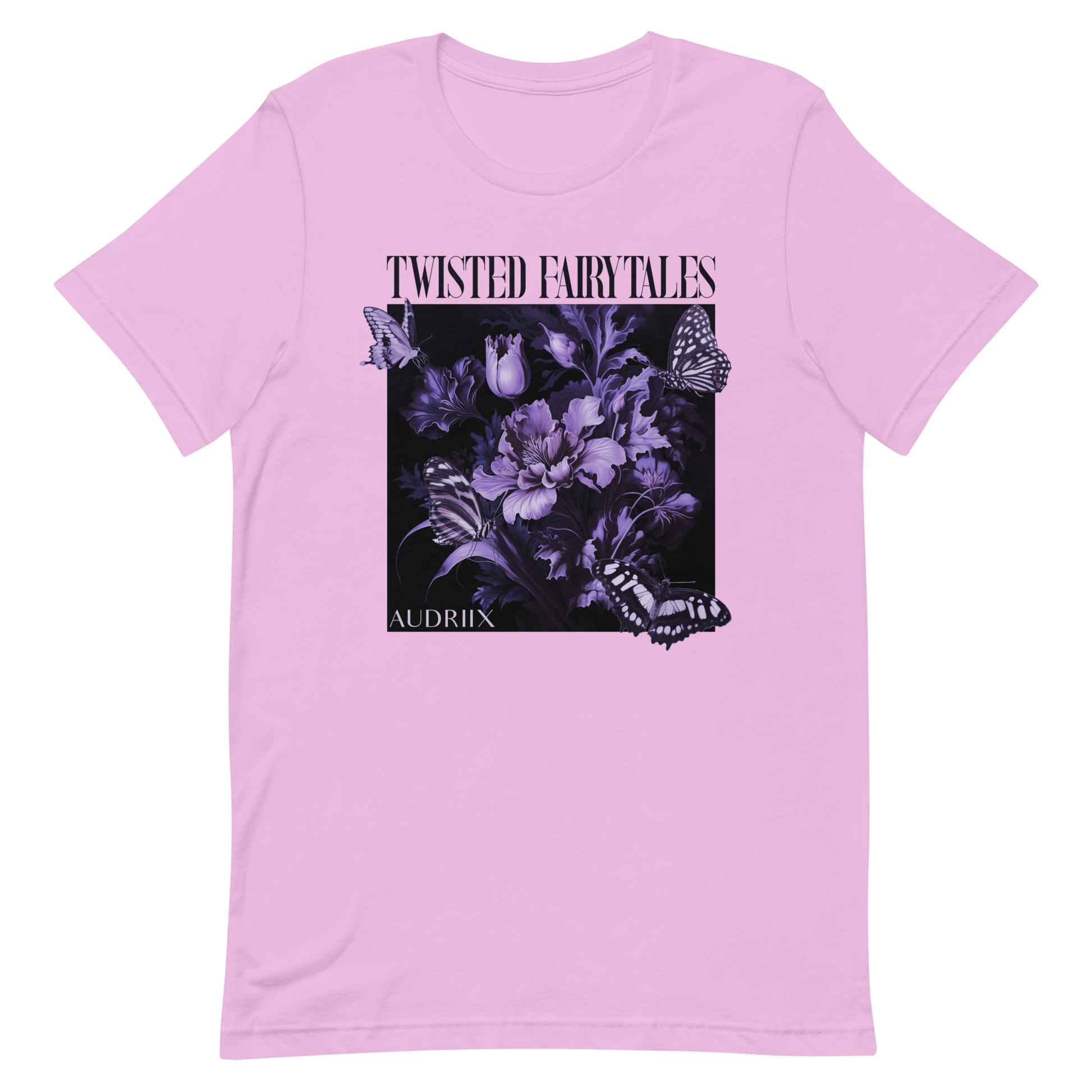Lilac t-shirt with purple Twisted Fairytales design on the front